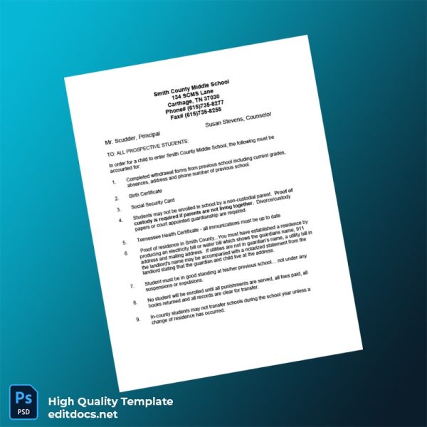 Don’t let outdated, manual enrollment guides slow your school’s registration process. Invest in the Smith County Middle School Editable Enrollment Guide Template today and experience efficient, error-free enrollment documentation. For additional customizable options to complement your administrative toolkit, browse the comprehensive utility bill template collection now.