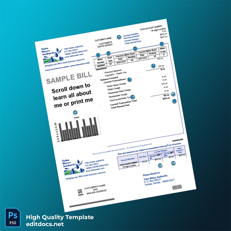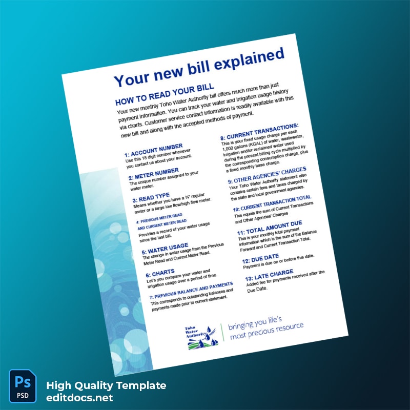 United States Toho Water Authority Editable Utility Bill Template: Reliable, Professional, and Ready to Use