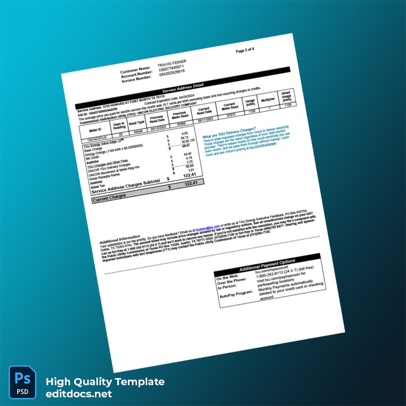 The embedded fonts and authentic TXU Energy branding accentuate realism, helping you pass verification checks with confidence. With instant file download upon purchase, you avoid the usual wait times, making this solution ideal for urgent requirements.