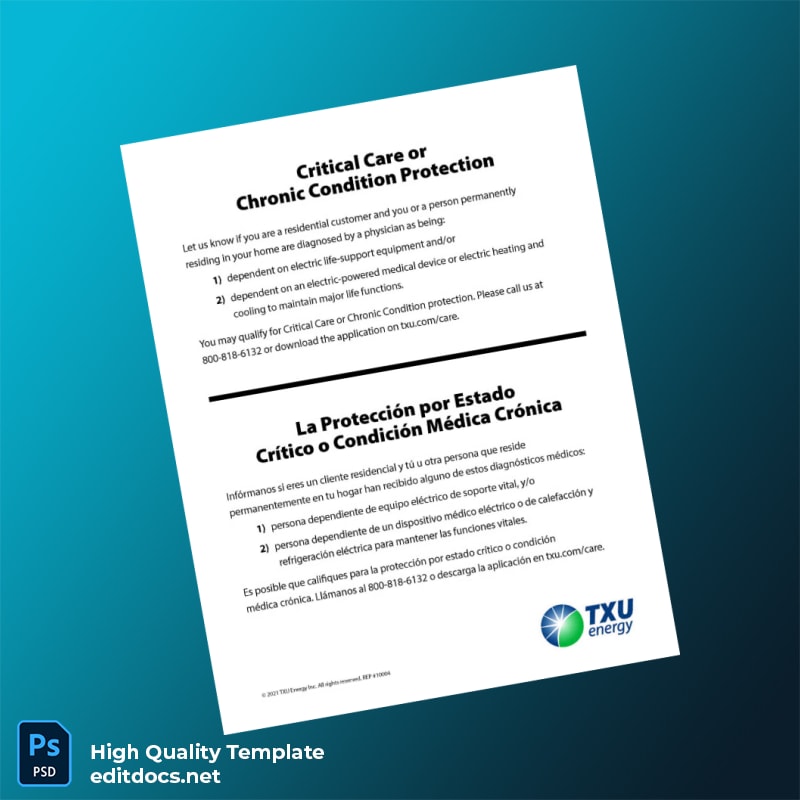 Be the first to review “United States TXU Energy Editable Electricity Bill Template in Word and PDF formats 4 page”