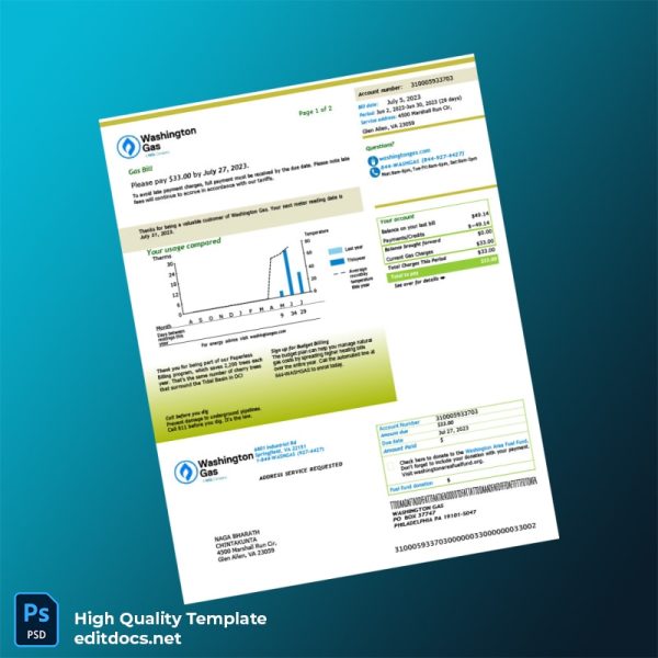 United States Washington Gas Editable Gas Bill Template in Word and PDF Formats
