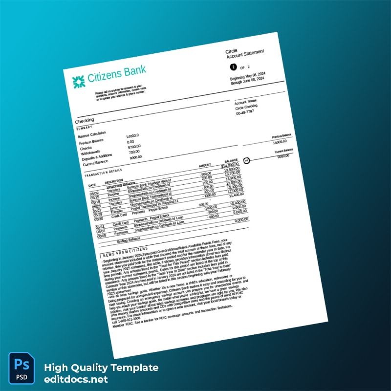 Don’t let missing or delayed documents hinder your progress. Get your USA Citizens Bank Account Statement Template today, and take the first step towards simplifying your financial documentation process. Download now and ensure your professional reputation stays intact!