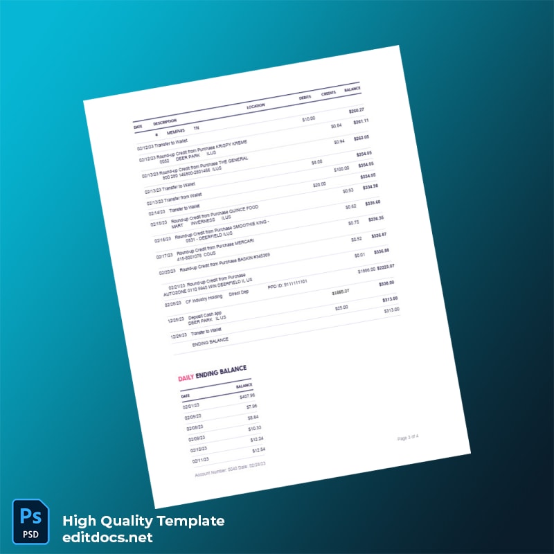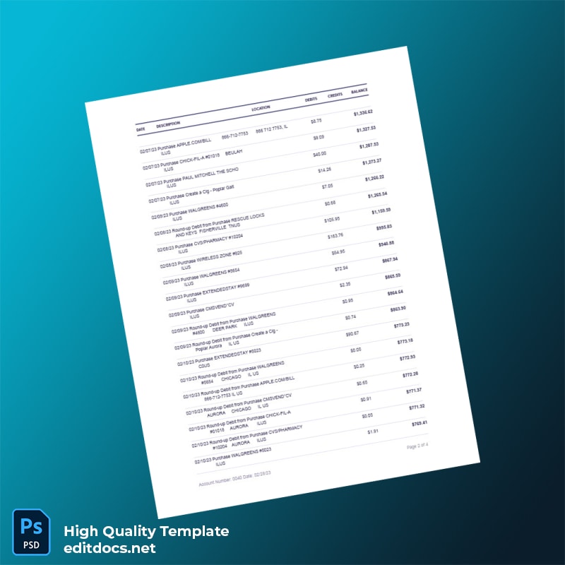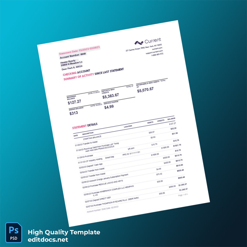 USA Current Bank Statement Template in Word and PDF formats 4 page