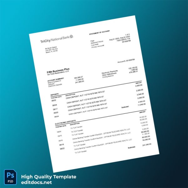 Don’t let document delays hinder your professional progress. With our USA Fifth Business Plus Statement Template, you can easily create polished and compliant financial documents that fulfill your documentation needs. Take the first step towards efficiency and professionalism by downloading your template now. For additional resources, explore this bank statement template to enhance your experience even further.