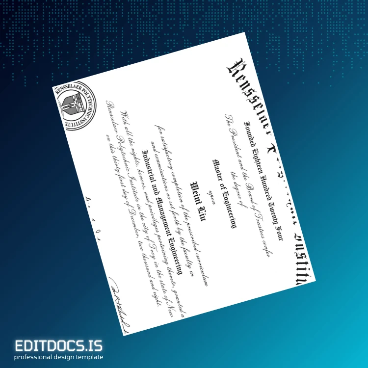 This editable diploma certificate template offers a seamless solution for professionals needing a high-quality, customizable document. Designed for ease of use, this template comes in Word and PDF formats, allowing you to quickly create an accurate replica of the USA Rensselaer Polytechnic Institute Master of Engineering in Industrial and Management Engineering certificate. Whether you’re replacing a lost diploma or preparing a backup copy, this file ensures professional results with minimal effort. For a variety of other academic and professional documents, explore our comprehensive editable diploma template collection.